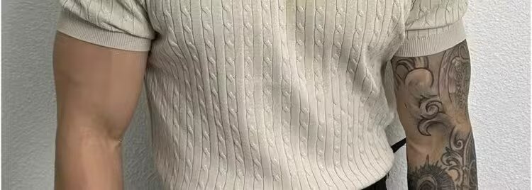 Leichtes Luxus-Strick-Kurzarm-T-Shirt für HerrenLeichtes Luxus-Strick-Kurzarm-T-Shirt für HerrenLeichtes Luxus-Strick-Kurzarm-T-Shirt für Herren